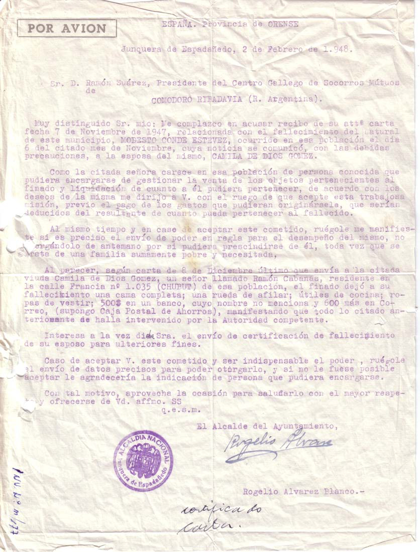 Letter from Orense, Spain