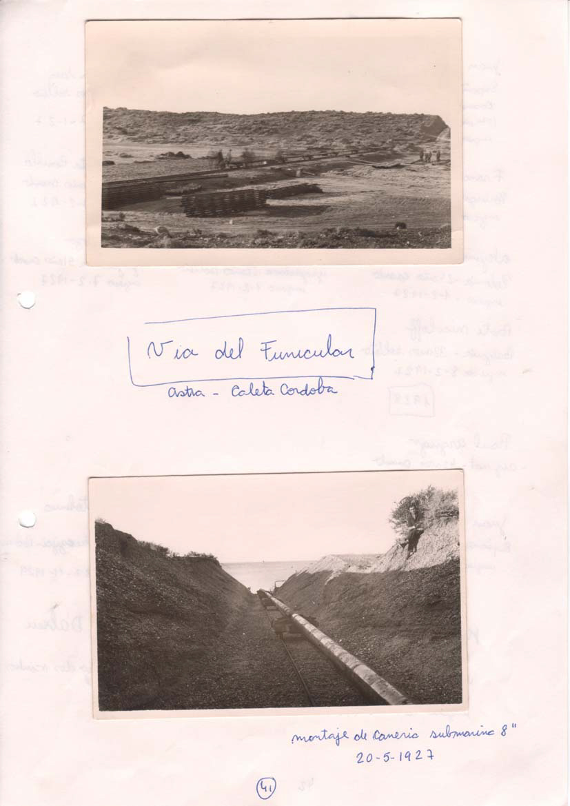 Views of work in oilfields Image Information Via del Funicular with photos PAT00389 ACPJA, Vol. 1, pg. 48 Scrapbook Astra Spanish Image Information Vistas de construcciones en Astra Post navigation List of sailors in Astra 1933-34Pipe laying using funicula Astra to Caleta Cordova Comment on this post Cancel replyYour email address will not be published. Required fields are marked *What is your message?Name * Email * Save my name, email, and website in this browser for the next time I comment.