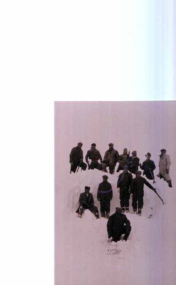 • Dos fotos de obreros despejando las vias del tren tapadas de nieve