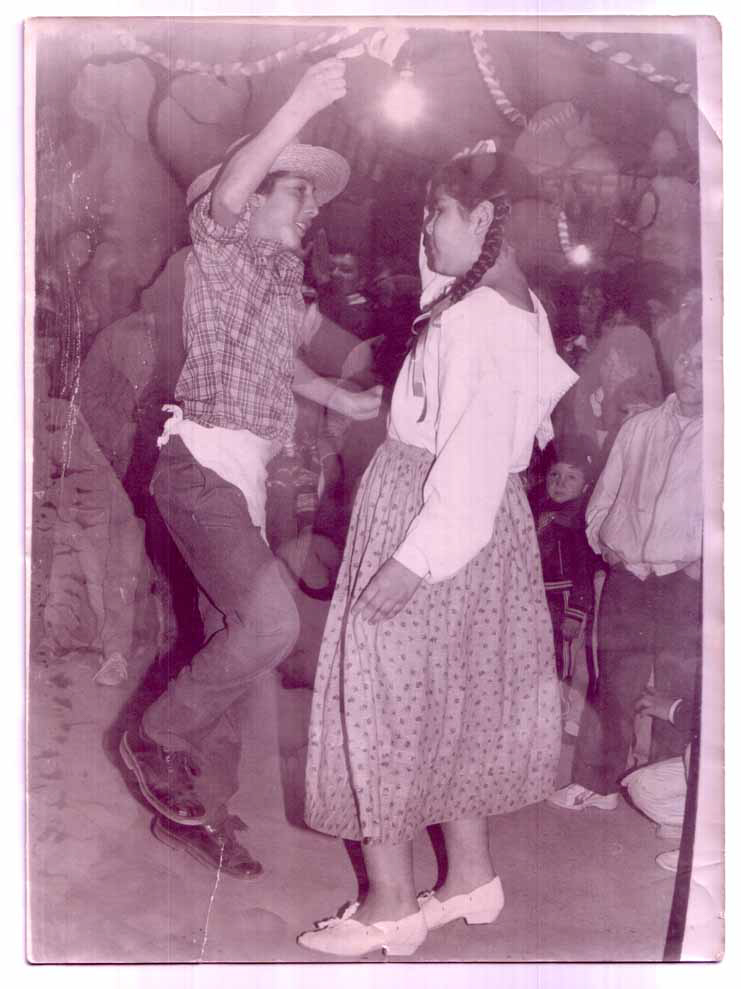 - Young Chilean couple dancing a ""cueca campesina"" (peasant-style cueca). Barrio San Martin