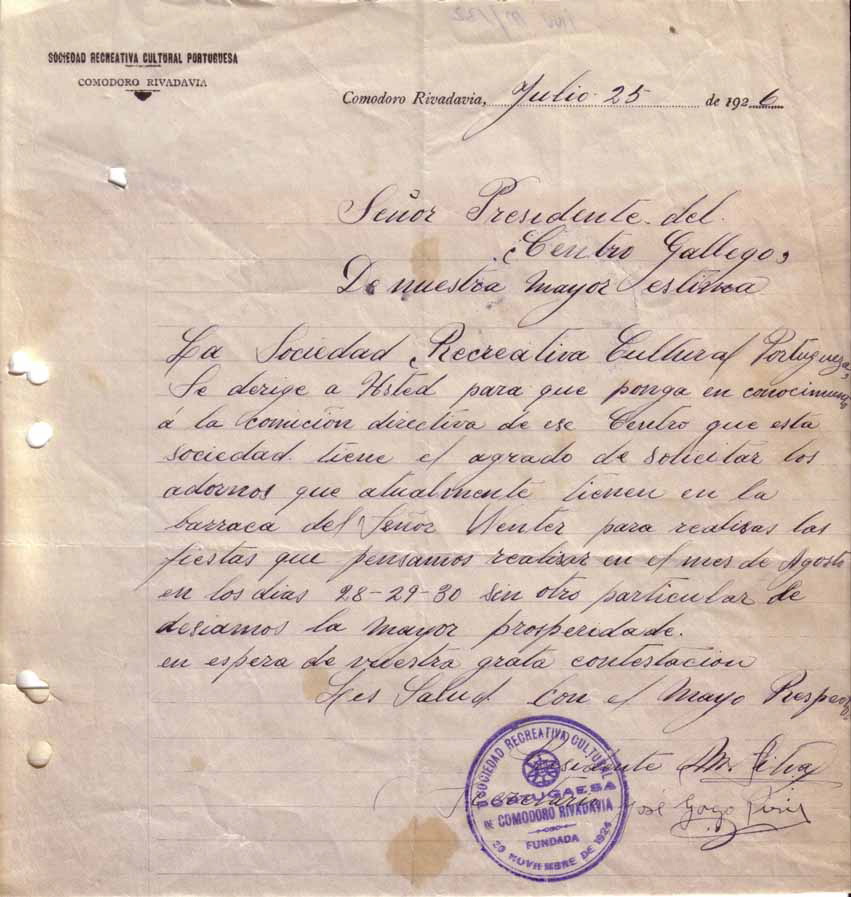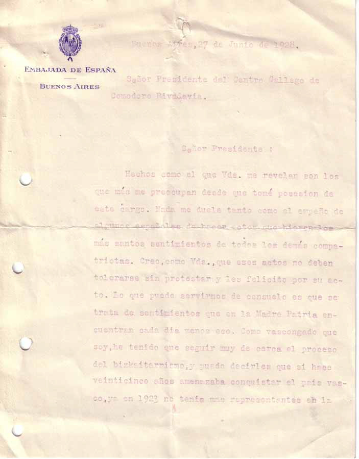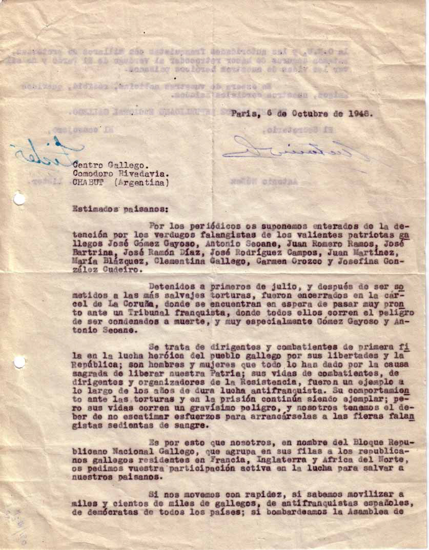 Correspondence, Galician Association