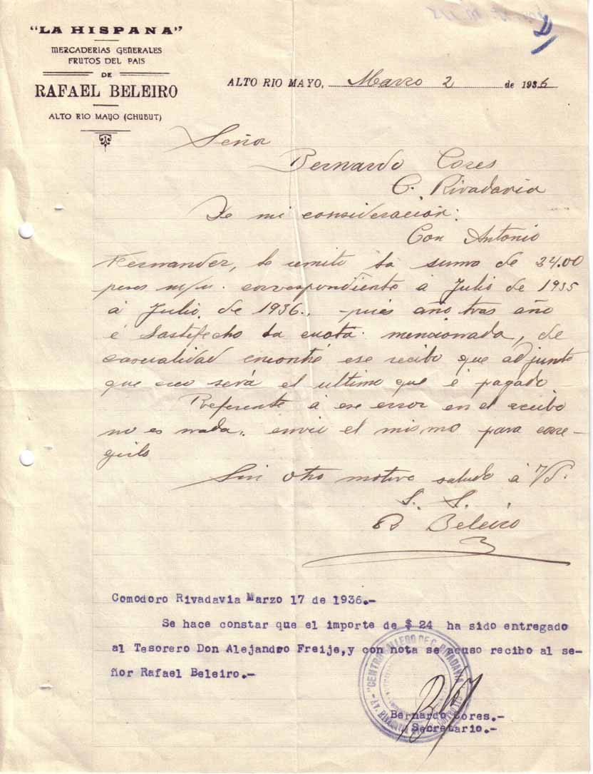 Correspondence, Galician Association