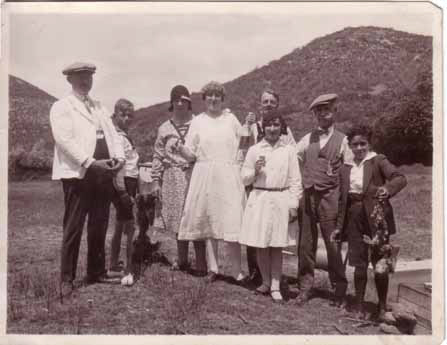 Group outdoors with hills in background