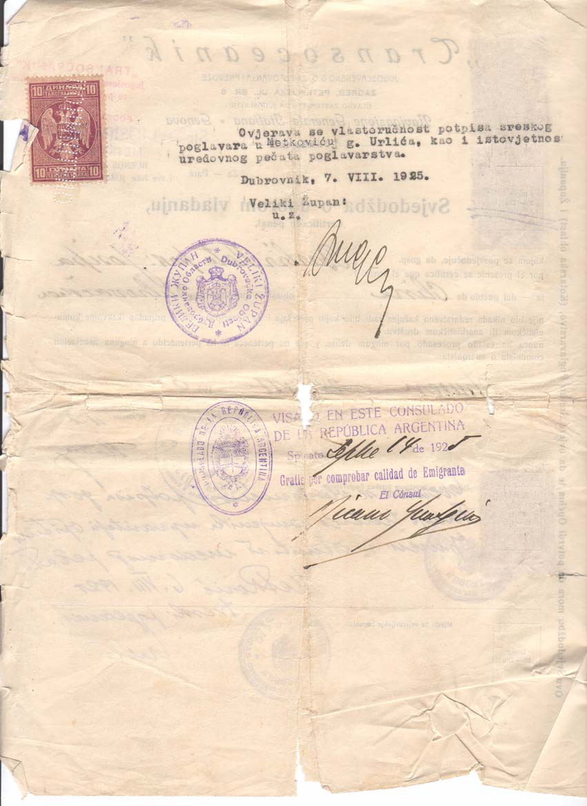Reverse of ticket with visa from Argentine Consul