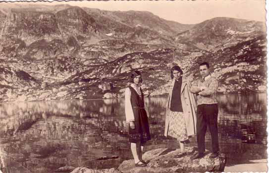 Group photo by mountain lake