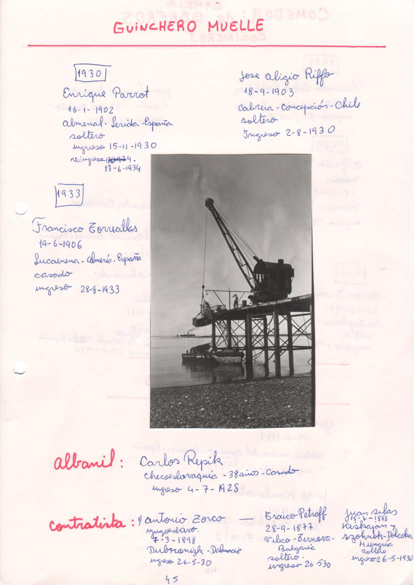 List of Astra personnel working on the Pier at Caleta Cordova, with photograph