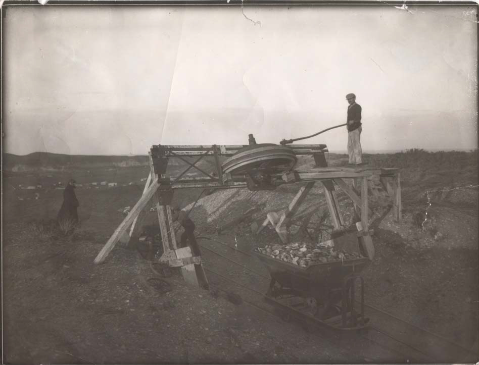 Workers extracting shells for brick making at Astra