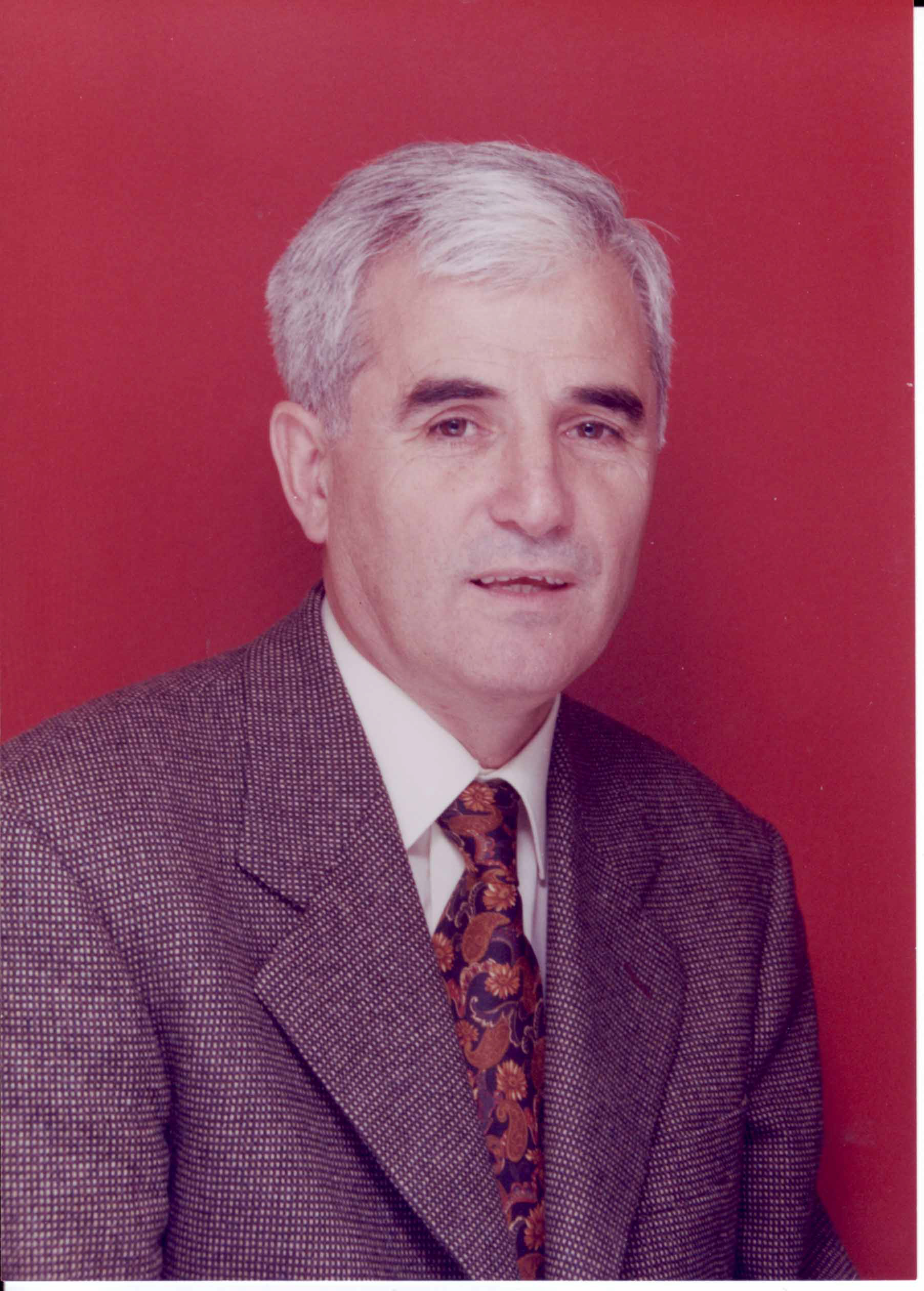 headshot with red background