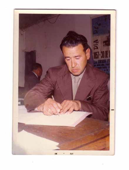 Carlos Héctor Boyer signing house deed.