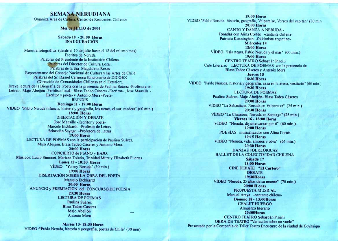 Pablo Neruda’s 100th celebration program.