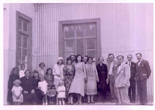 Group of families in front of chappa building